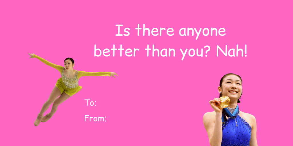 Valentine’s Day is about celebrating love, whether it’s love for a significant other, for friends, or for the things you love to do. Okay, maybe that’s a bit of a stretch, but it is a good time for silly romantic puns, so here’s a selection of Valentine’s Day cards for the special skating fan in your life!
